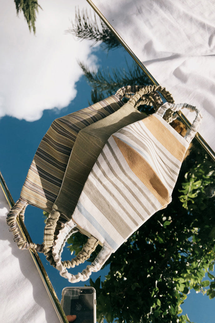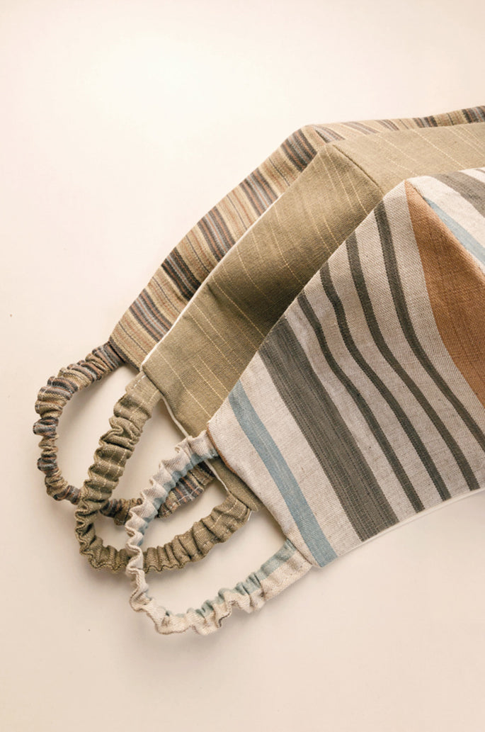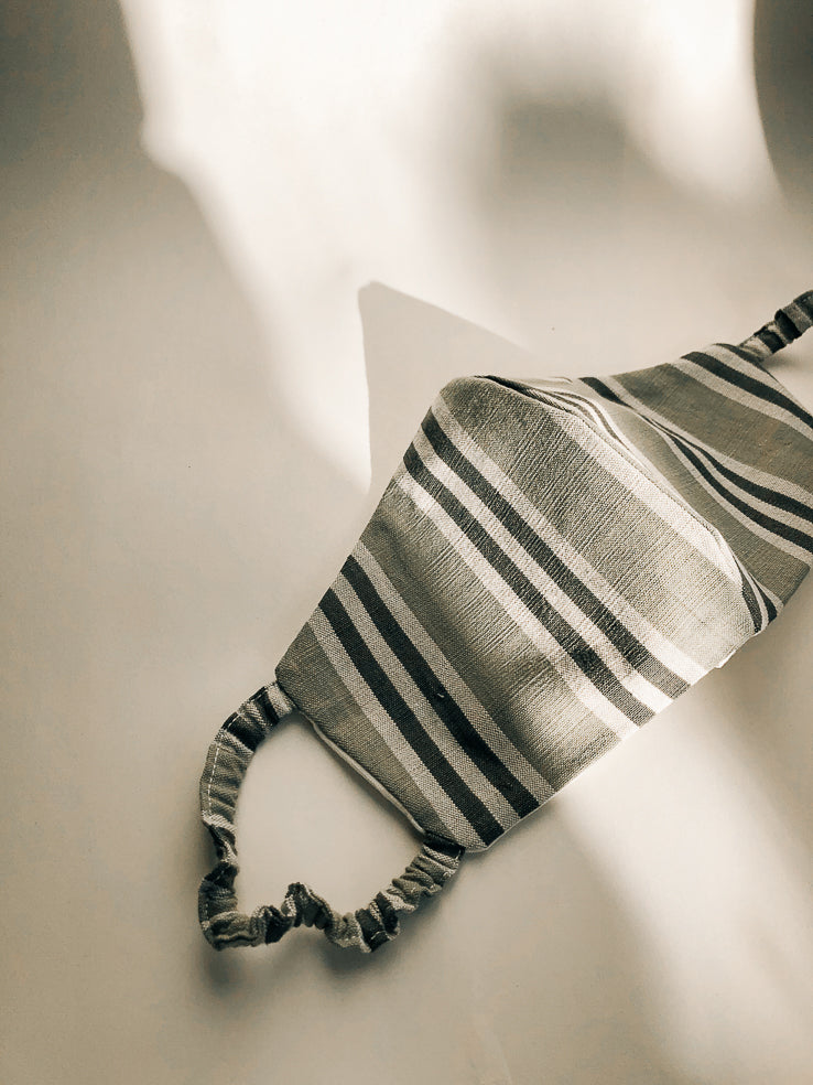 Handmade lovingly from our Lorek textiles, this triple layer reusable cotton mask is handcrafted to provide secure protection for your face while support clear breathing — utilizing our breathable, close handwoven cotton on the outside, each MASKE mask is crafted with non-woven interlining in between the layers and our plain, natural handwoven cotton that acts as the inner lining as well as a filter pocket.