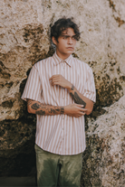 Model is 175cm / 5ft 7in. and wears a size M. This shirt fits true to size with an intentionally longer body length.