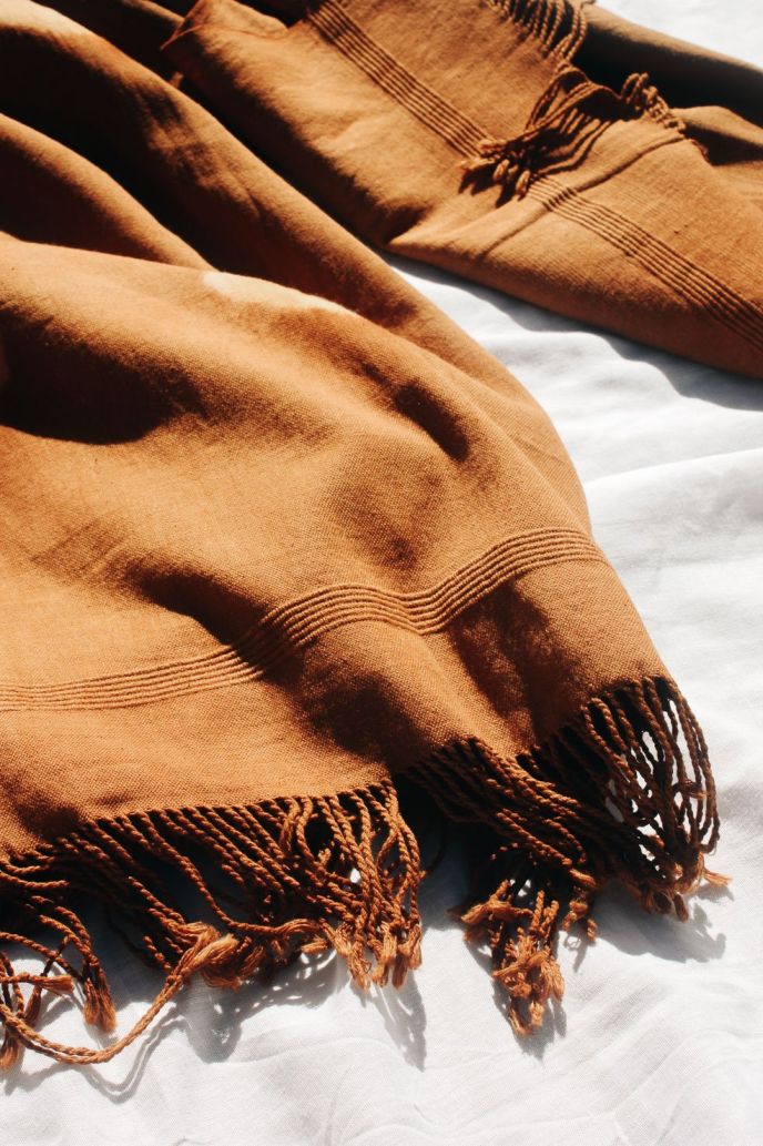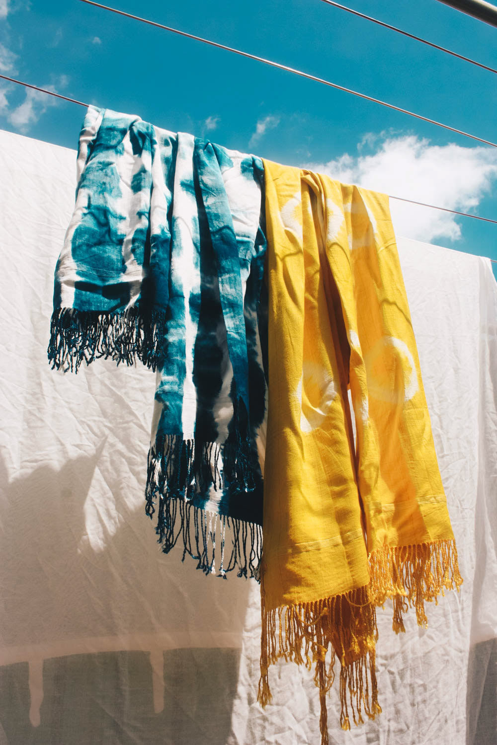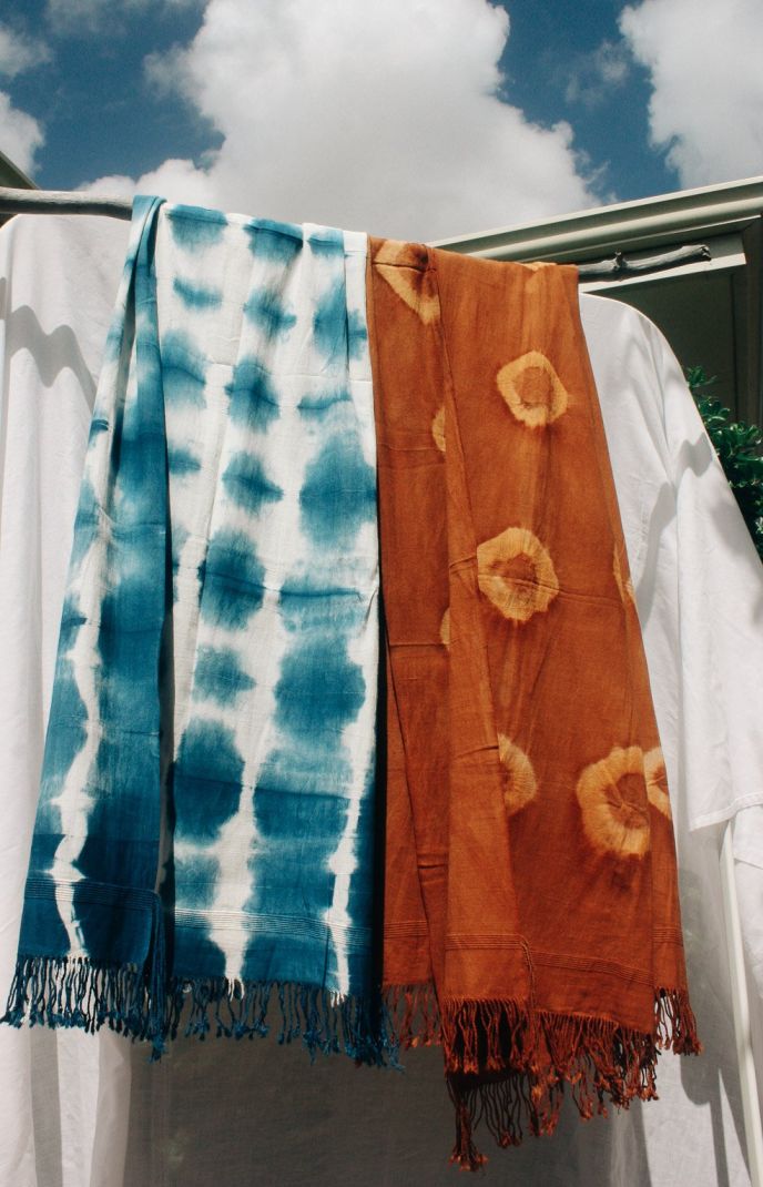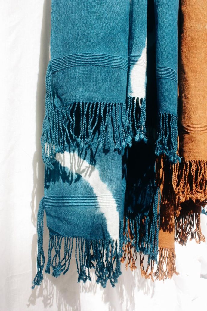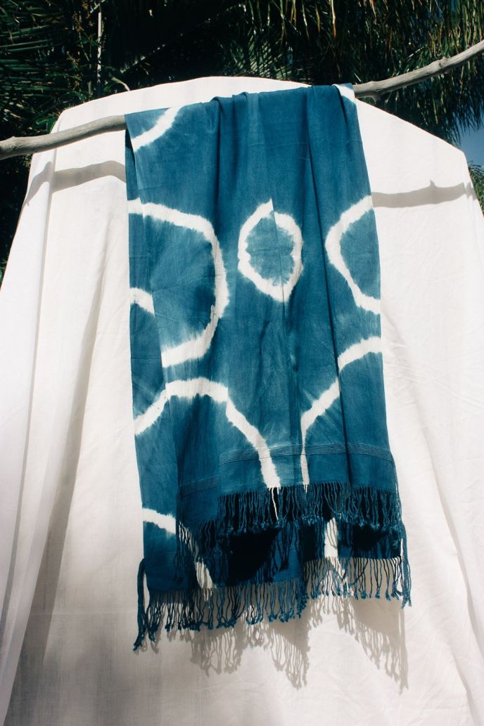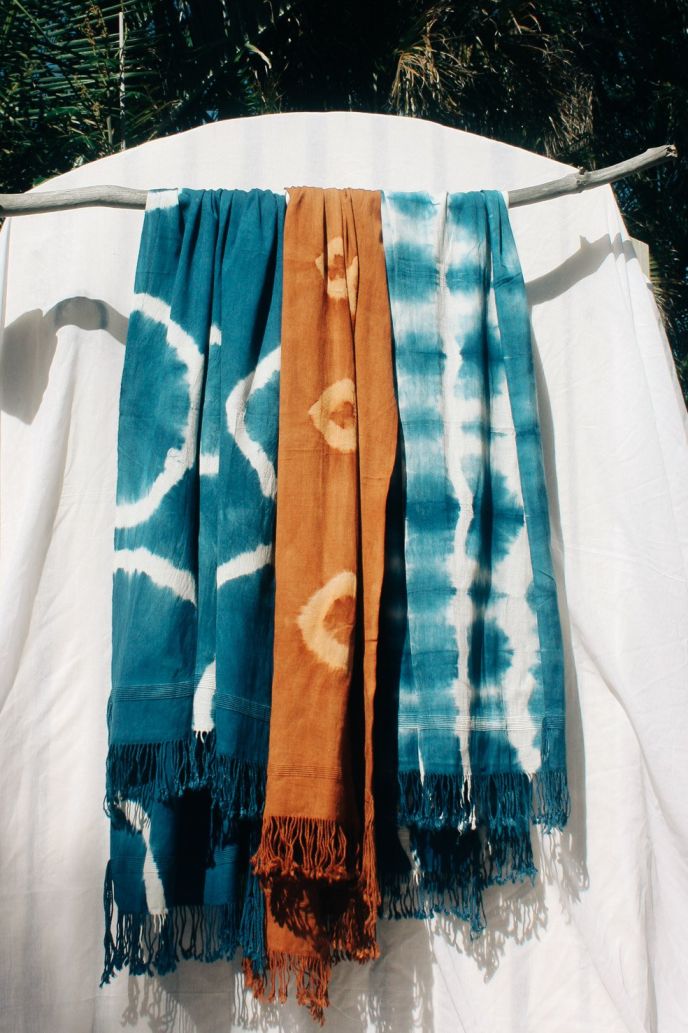 Our artisans utilise native Indigofera Tinctoria plants and palm sugar blocks for the Indigo hue, native Indonesian Mahogany tree bark and natural crystal salt fixation for the Mahogany hue and native Heartwood of Cockspur thorn and natural alum as mordants for the Canary hue.