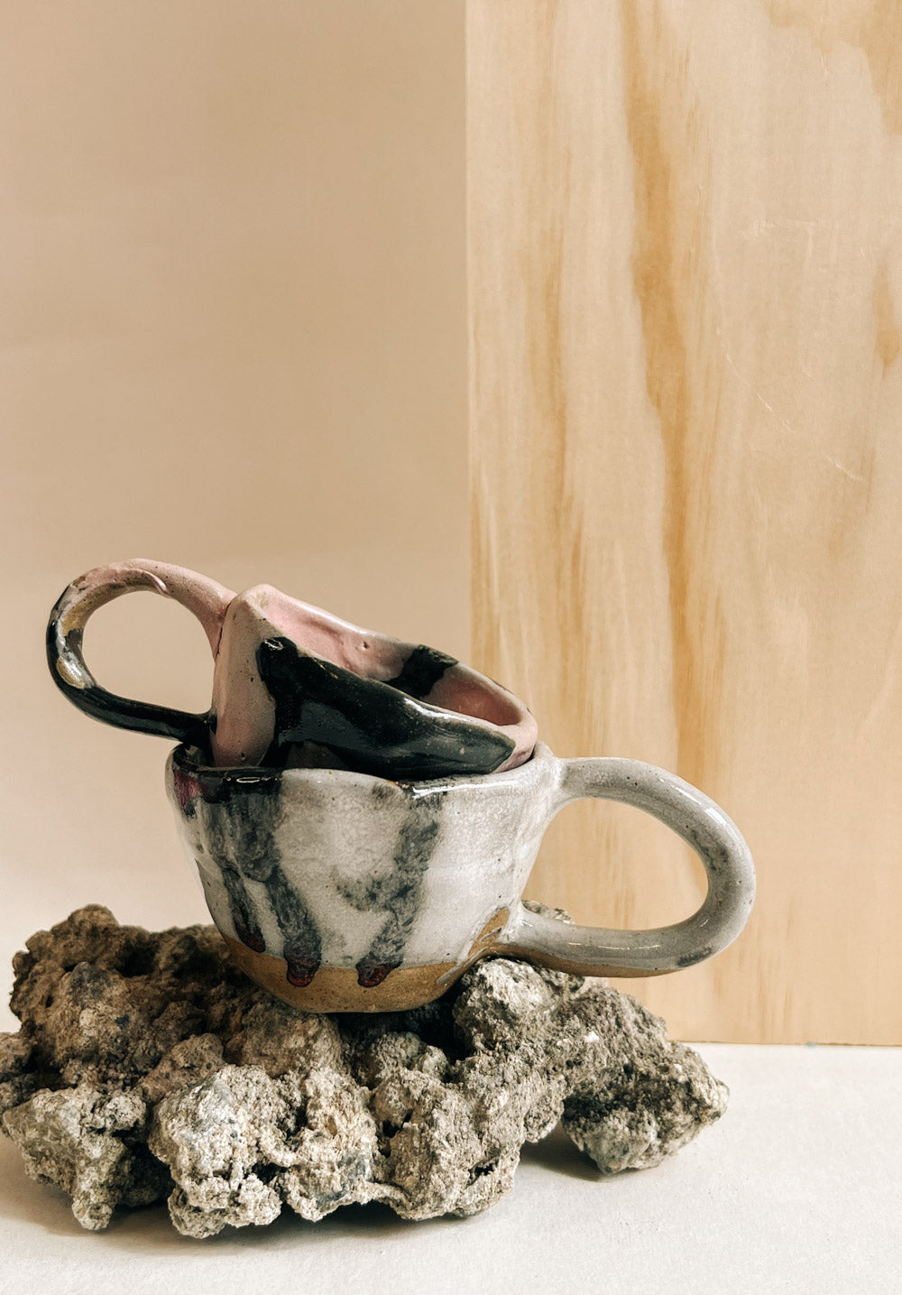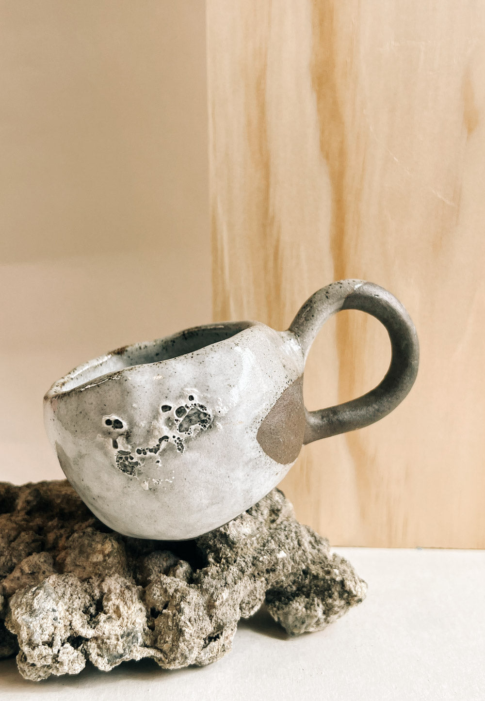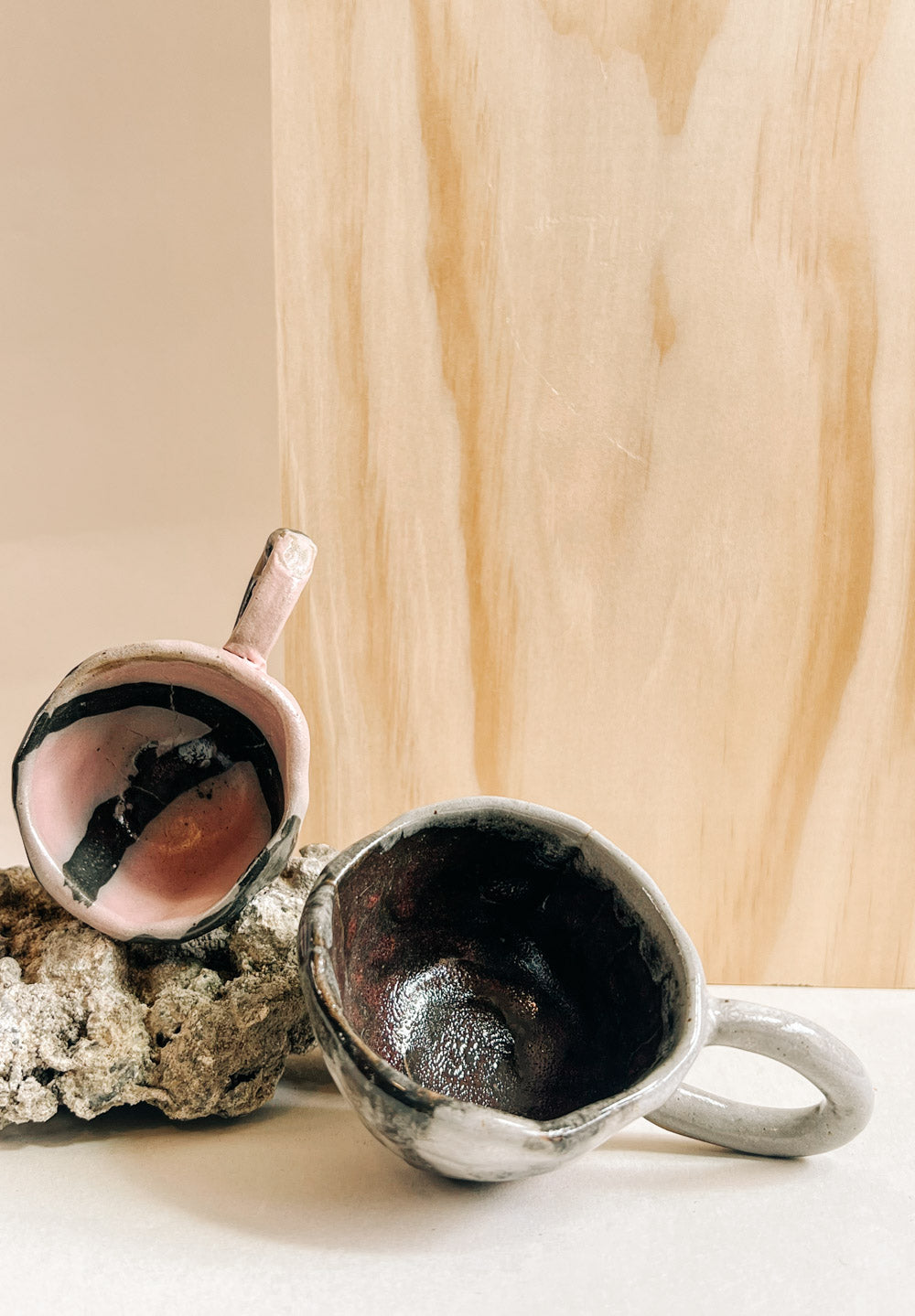 Handpainted with glaze finishing, this set of 2 handmade mini-size shot cups is one with stories to share, resulting in marmoreal of coral earthy tones. Handthrown using 100% natural clay and handpainted with glaze finish by the Klipoh Artisans.