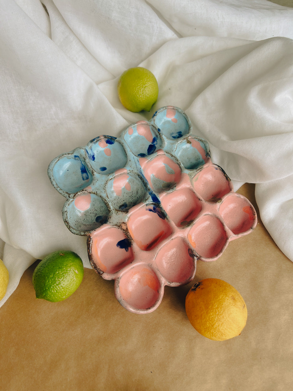 The Goggie Trays are versatile ceramic trays designed to bring both function and beauty to your home. Perfect for storing eggs, onions, or serving dips, each piece is hand-thrown from 100% natural clay and finished with a hand-painted glaze by the Klipoh Artisans.