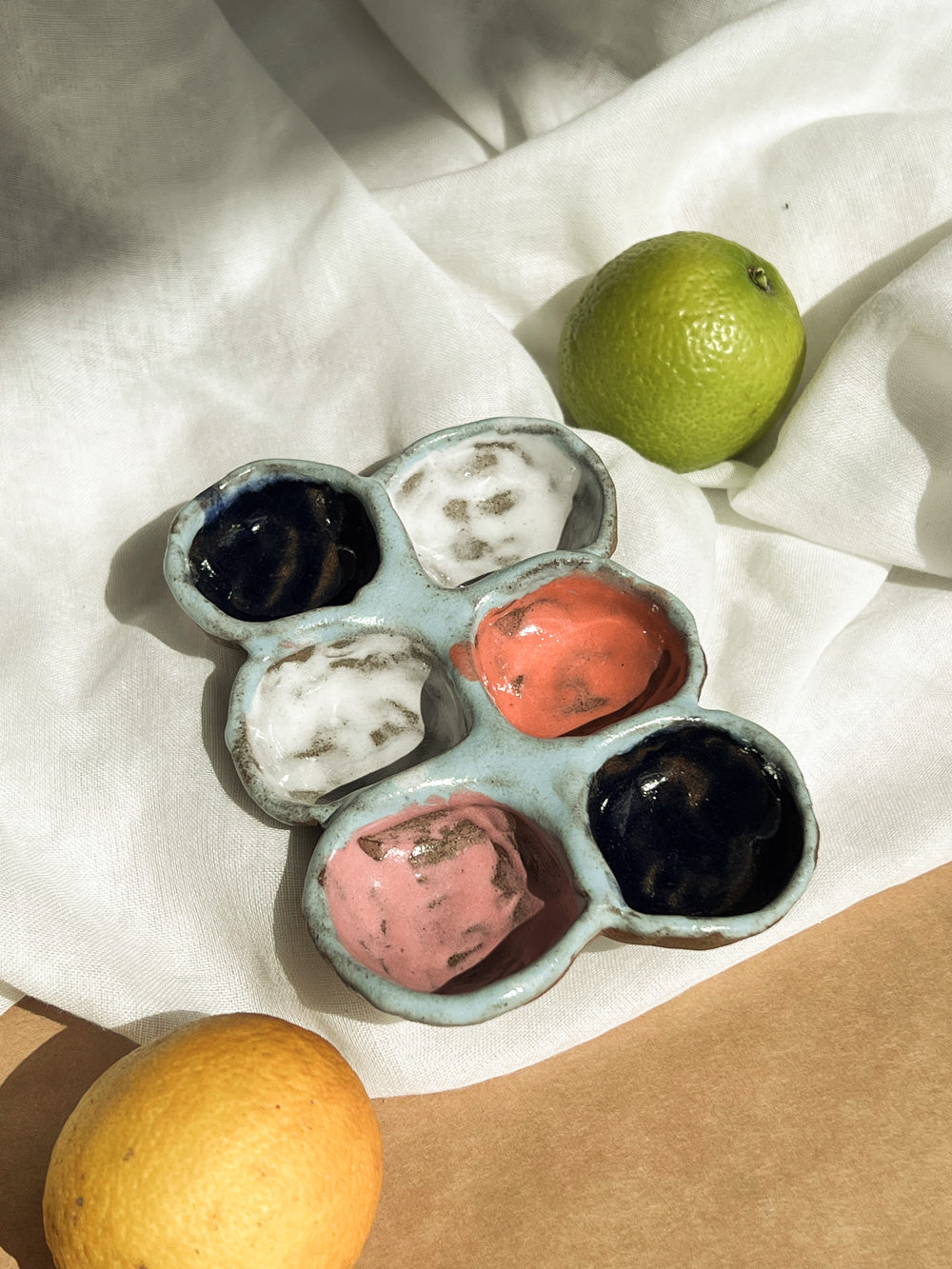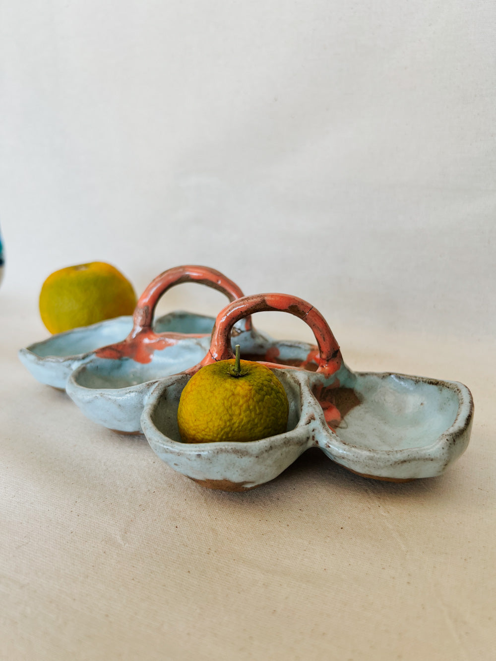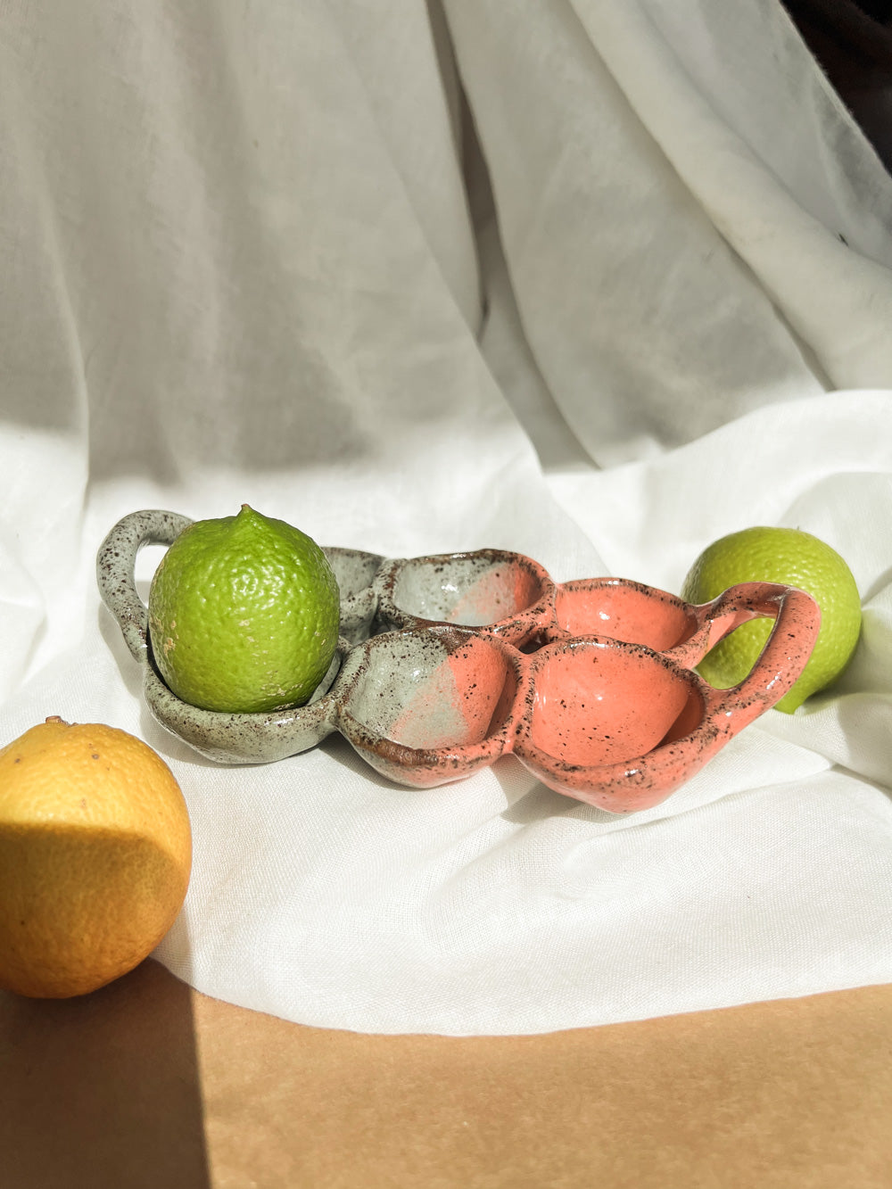 Each tray is hand-thrown and finished with a hand-painted glaze, making every piece unique in tone and texture. Available in a range of colours to complement your kitchen or living space.