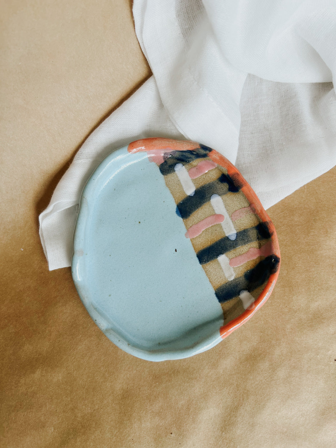 The Pleta plate is more than just serveware — it carries a story of craft and tradition. Hand-thrown from 100% natural clay and shaped by the Klipoh Artisans, each piece is handpainted with a glaze finish, creating a unique contrast of marmoreal, subdued tones.