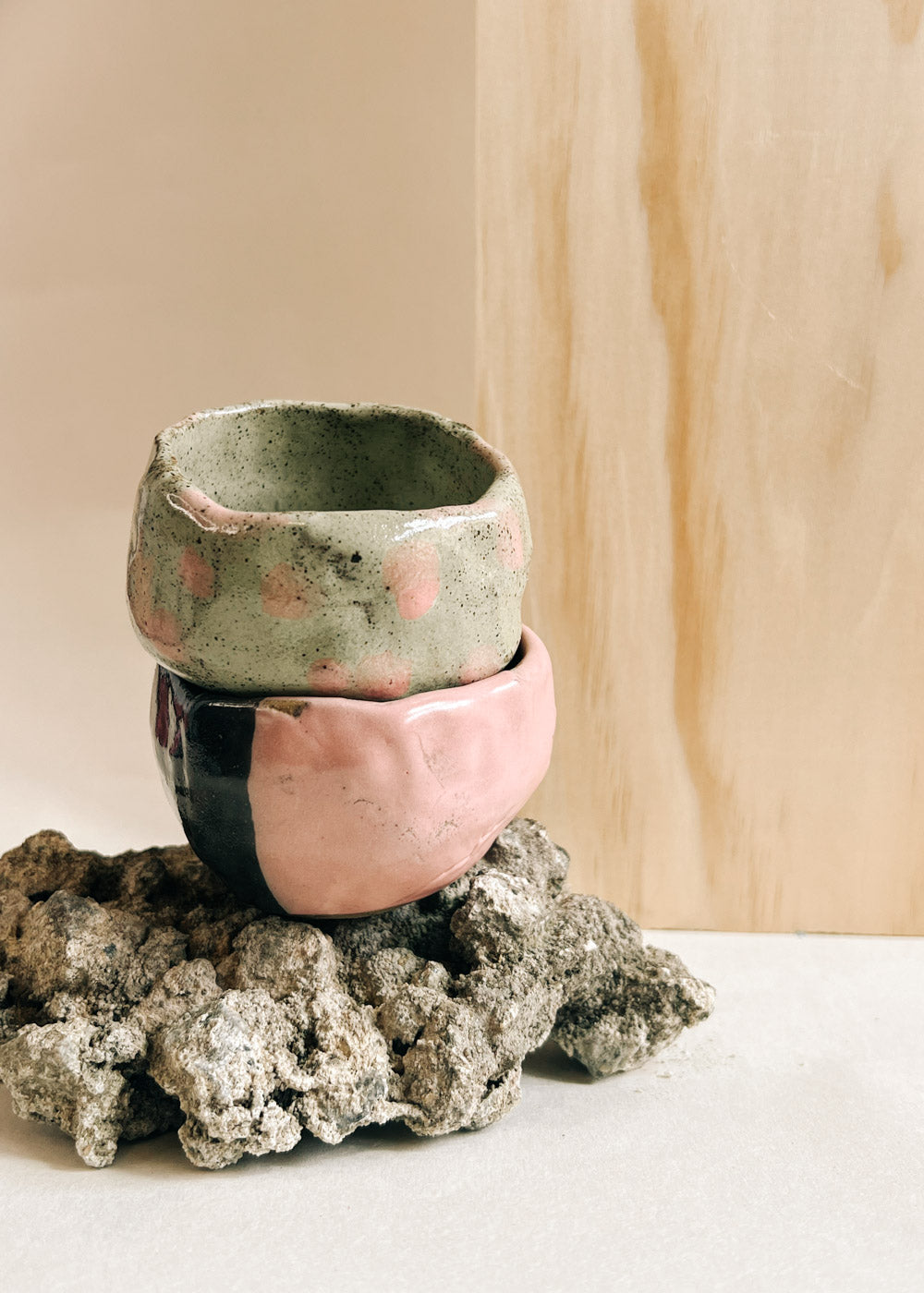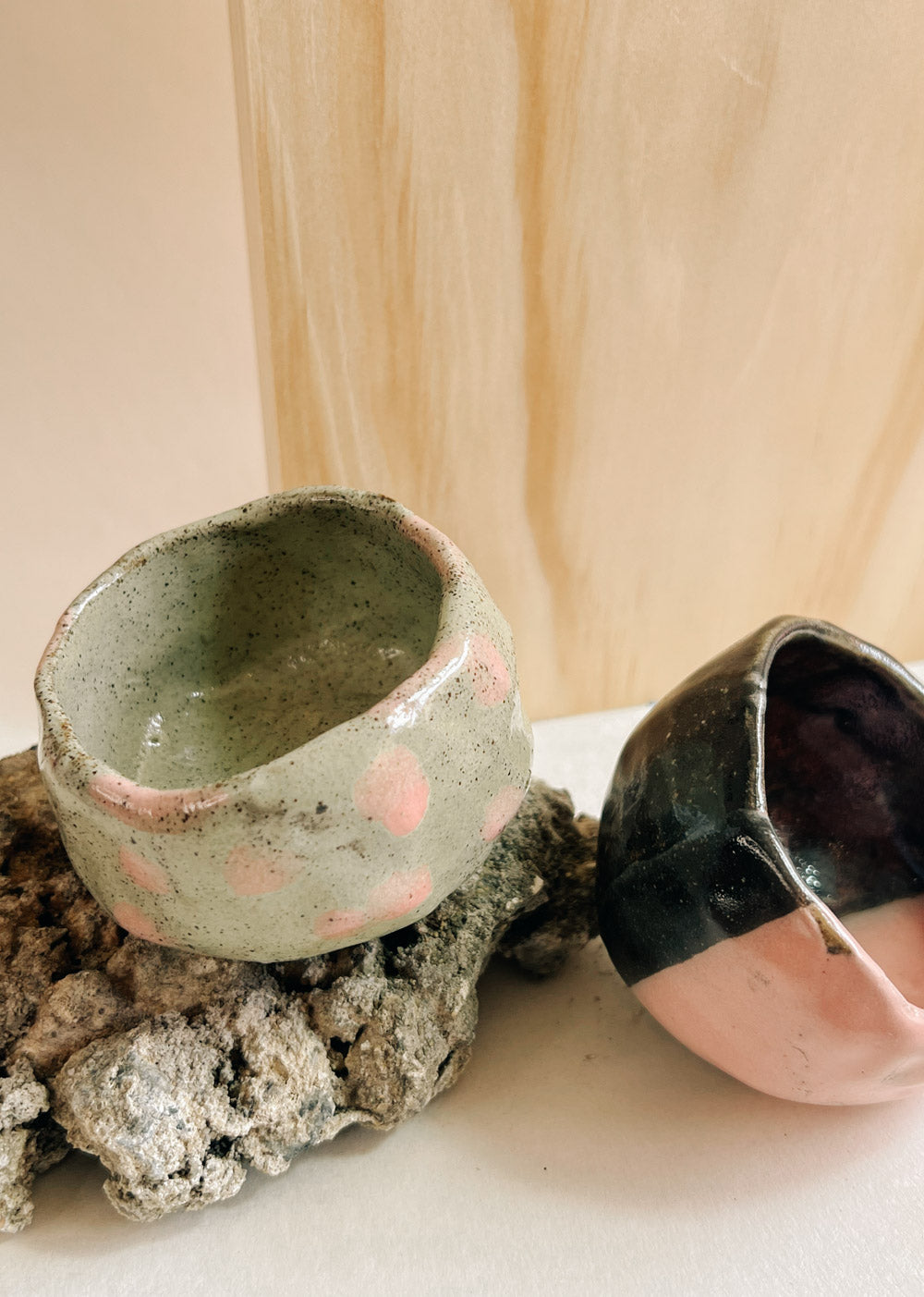 Crafted by the Klipoh Artisans from 100% natural clay, these ceramic shot-sized cups are handthrown and finished with a hand-painted glaze, making each piece truly unique.