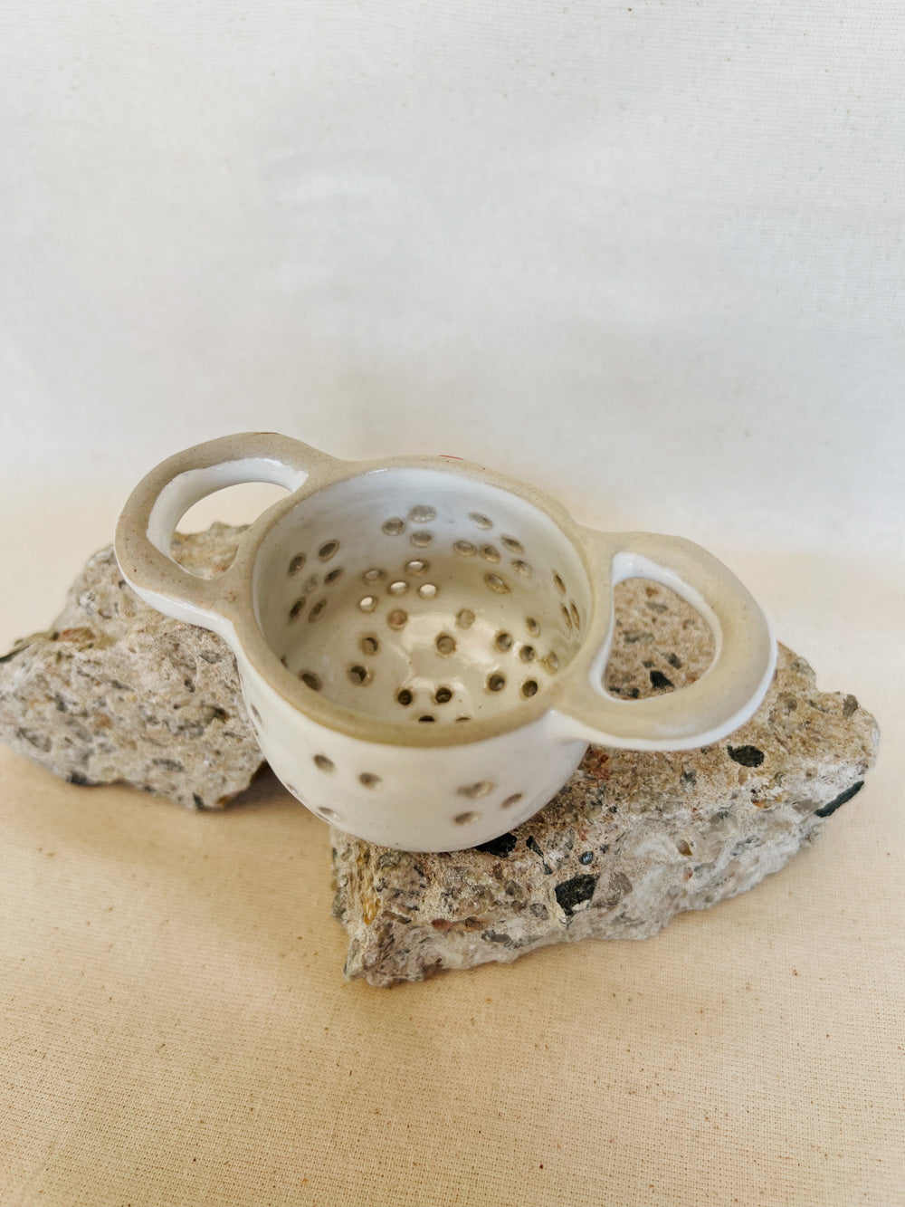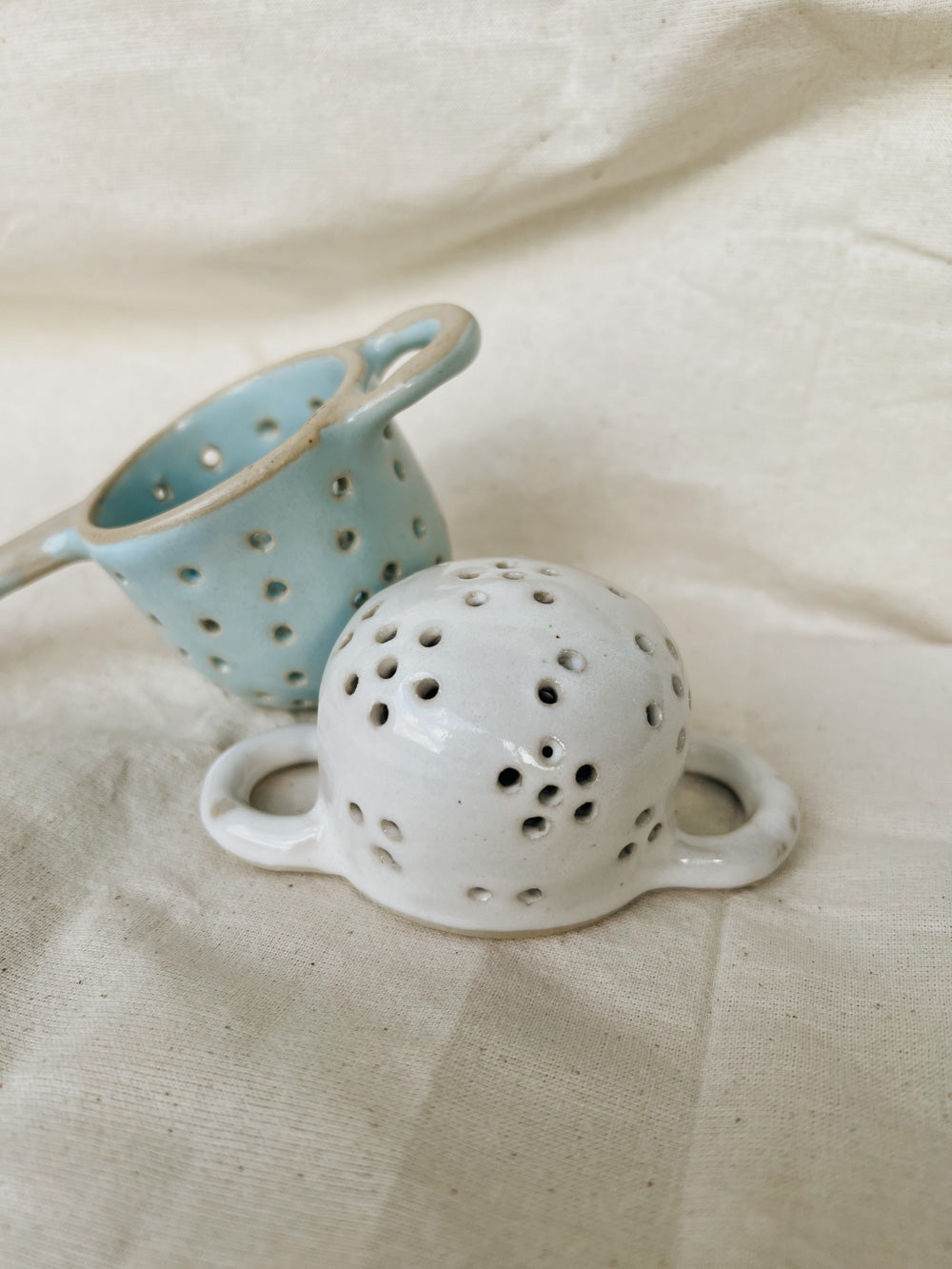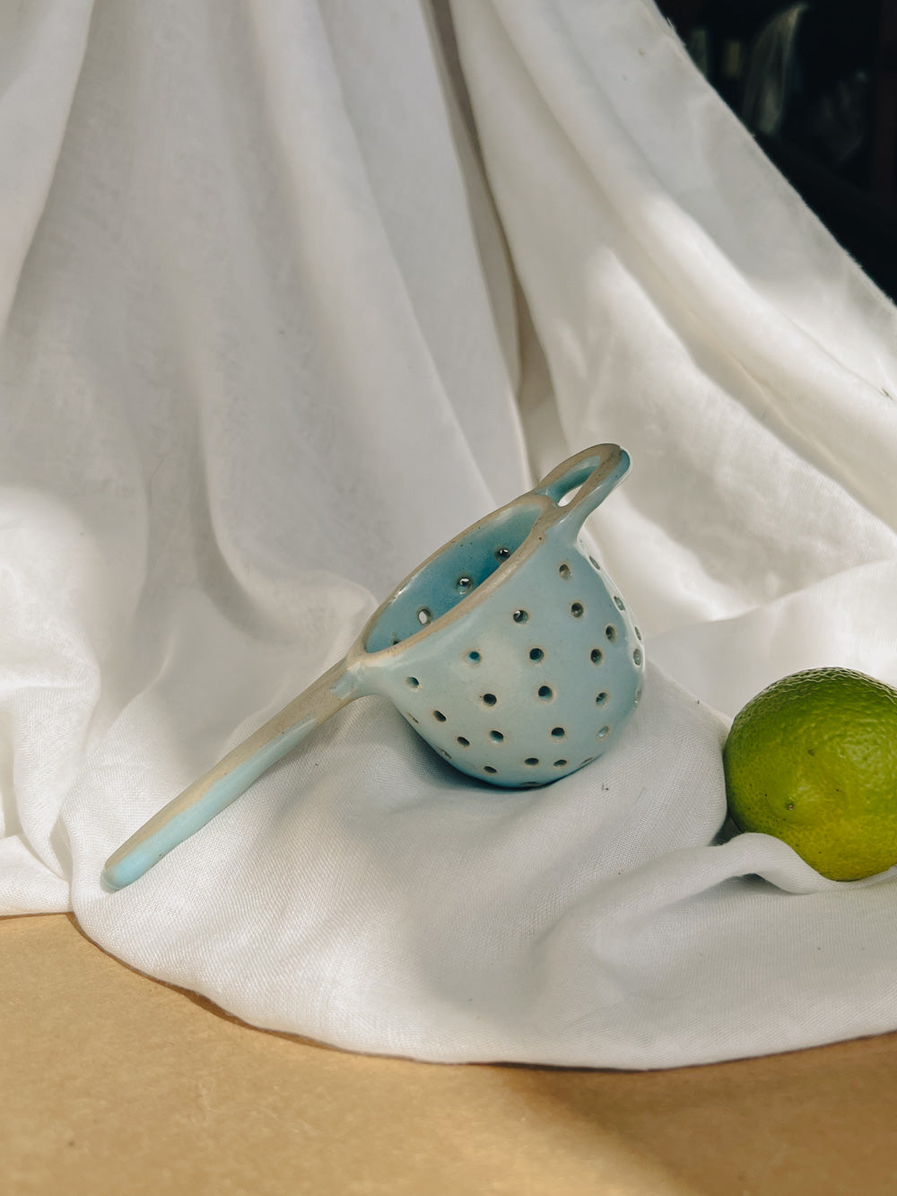 A sustainable, artisan-made tea accessory crafted by the Klipoh Artisans to elevate your daily ritual, the Sieba tea strainer is a functional yet beautiful addition to any brewing kit. Featuring a convenient handle, each piece is handthrown from 100% natural clay and finished with a hand-painted glaze, creating unique tones and textures — no two are ever alike.