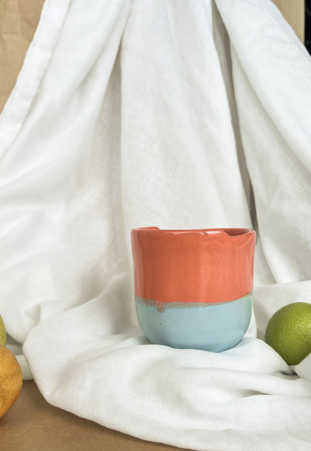 Crafted by the Klipoh Artisans from 100% natural clay, our Tiga Cups are perfectly sized for your daily coffee or tea. Each piece is hand-thrown and hand-glazed, resulting in unique tones and textures that make every cup one of a kind.