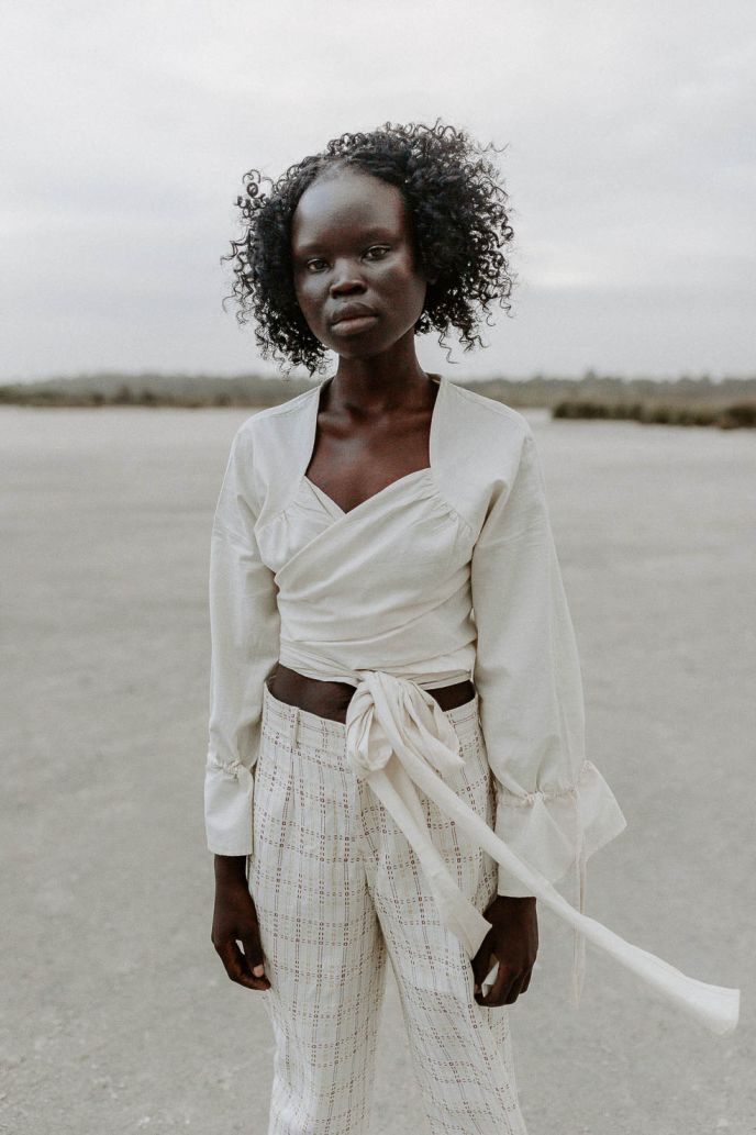 Model is 175cm / 5ft 9in. and wears a size XS/S. This piece fits true to size.