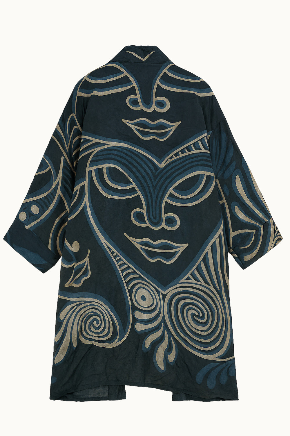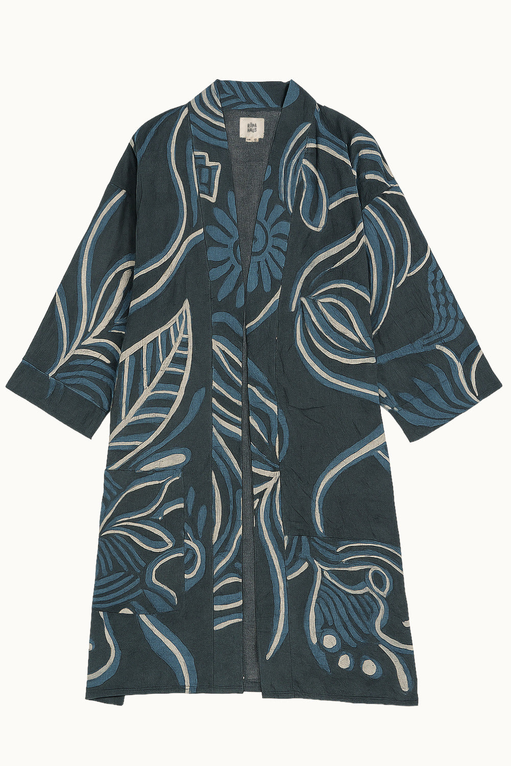 Each Gala kimono is intricately hand-drawn using the traditional technique of wax-resist dyeing, a process that transforms fabric into a wearable canvas of vibrant stories.