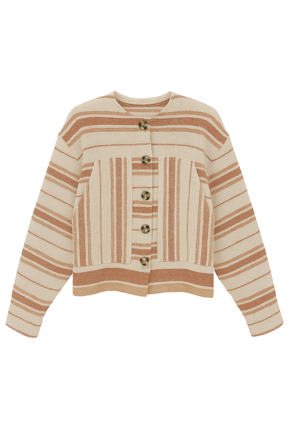 Designed, laid, dyed and handwoven entirely and independently by our Lorek Weavers, Gia Jacket is a result of complete experimental piece — hand-dyed using Indonesian Mahogany Bark before fixed with natural alum to bring out the deep, rose shade.