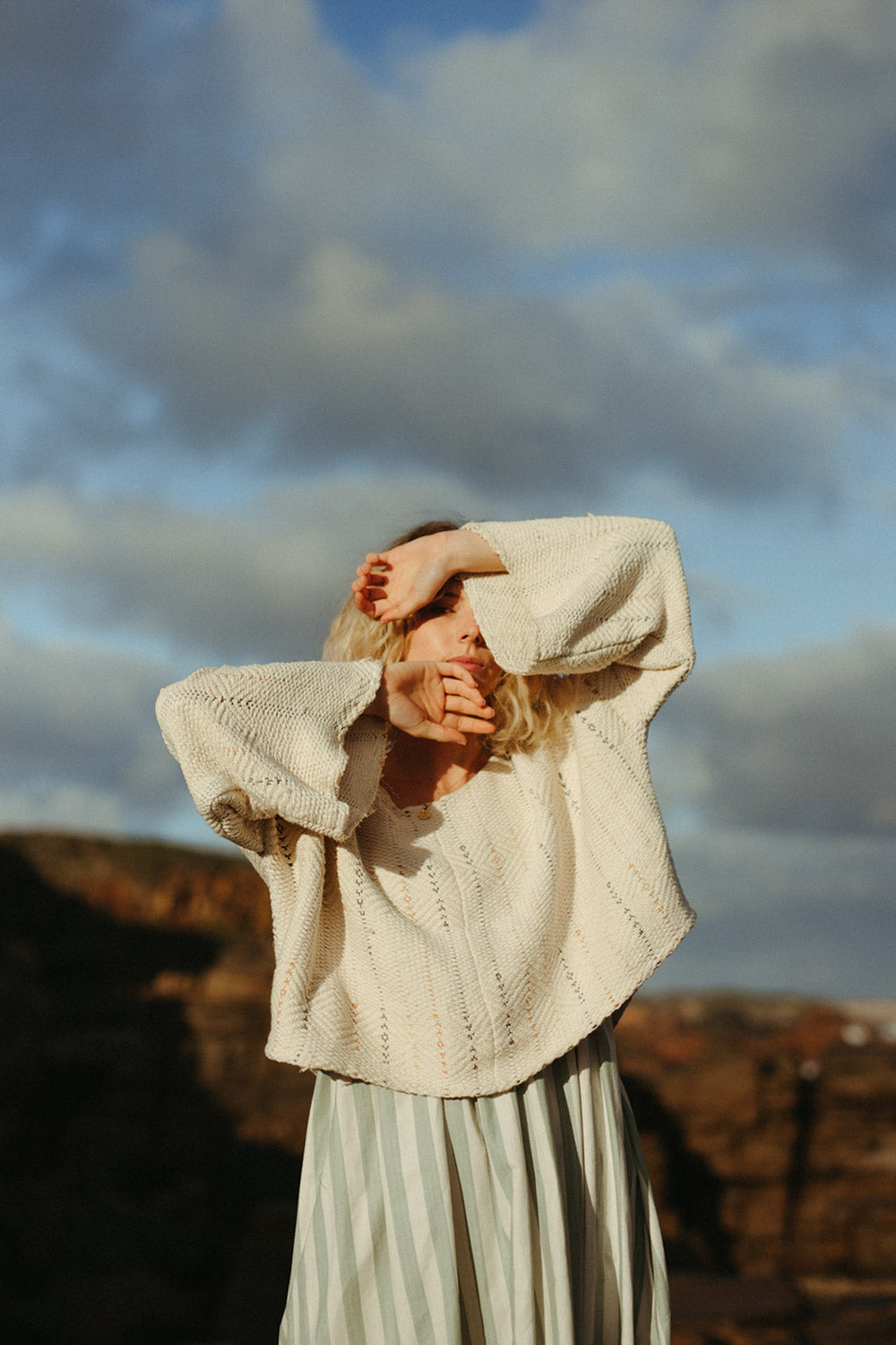 Model is 175cm / 5ft 9in. and wears a size OS. This piece comes in one size and has an oversized design to fit XS to L.