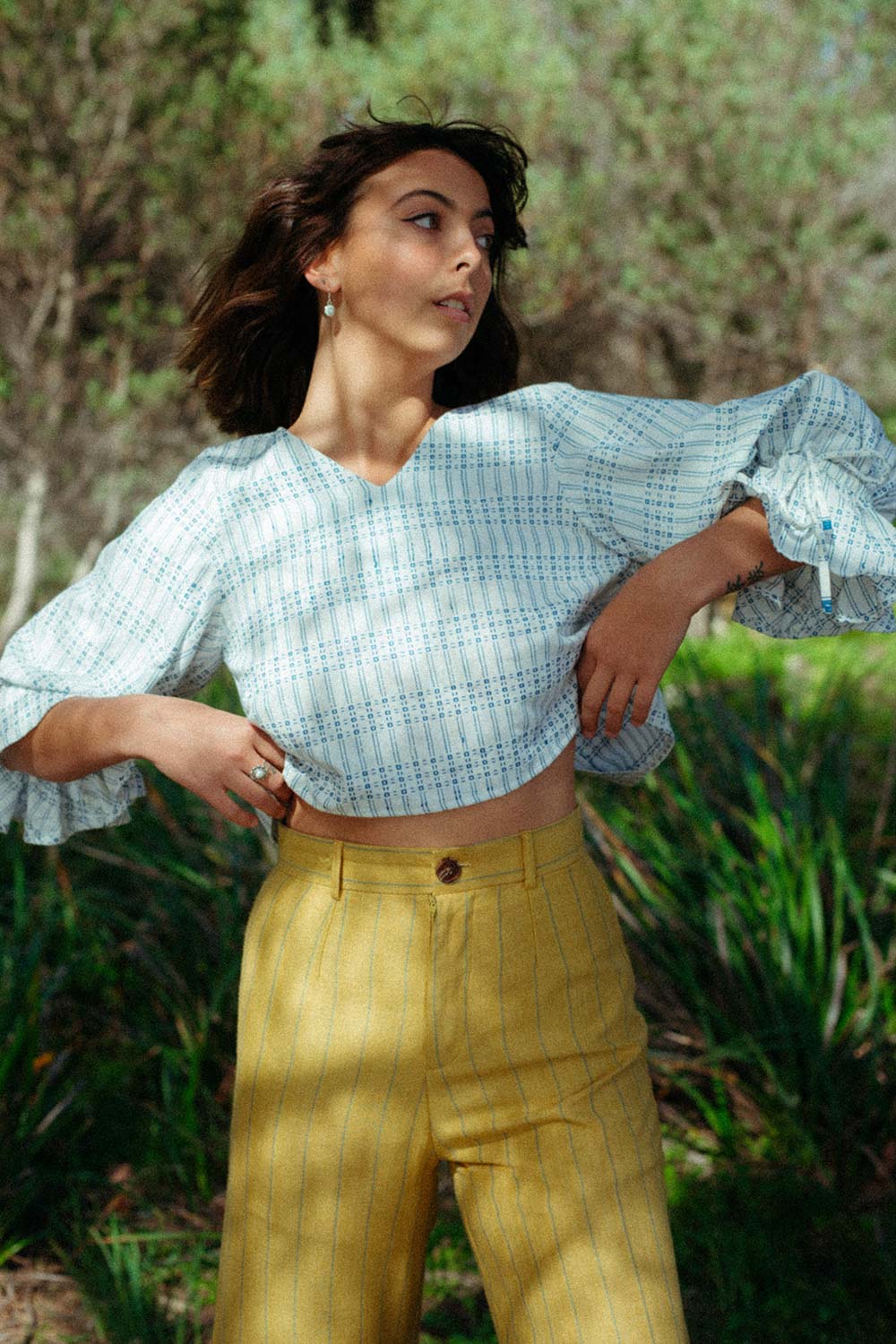 Who knew you can have it all in one pair of pants? The Sorja Pants is a high-rise pant with a center front zip fly and an exposed shell-button as closure. Hugging you nicely in the hip and notably complementing your bootie at the same time, these pants feature a wide, straight cut and a flattering ankle-length leg.