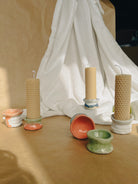 Timeless, versatile, and earth-friendly, these handmade beeswax candles bring natural beauty and warmth to any occasion. When lit, these sustainable beeswax candles burn brightly and release a subtle honey aroma.